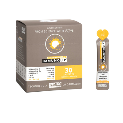 Wysoko przyswajalny kompleks witaminy C i D, kurkuminy, rokitnika, cynku i selenu zamknięty w liposomach w postaci doustnego żelu.