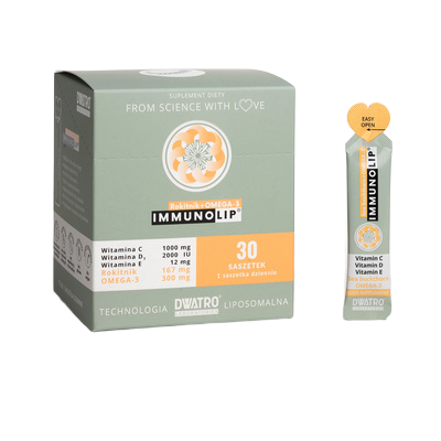 Wysoko przyswajalny unikalny kompleks witamin C, D i E w połączeniu z wegańskimi kwasami omega-3 z oleju z mikrolag i rokitnika w technologii liposomalnej.